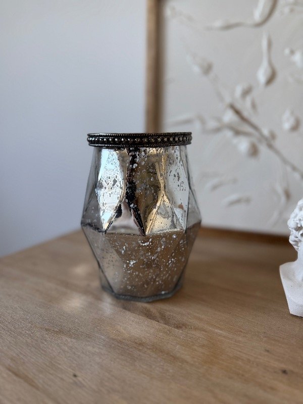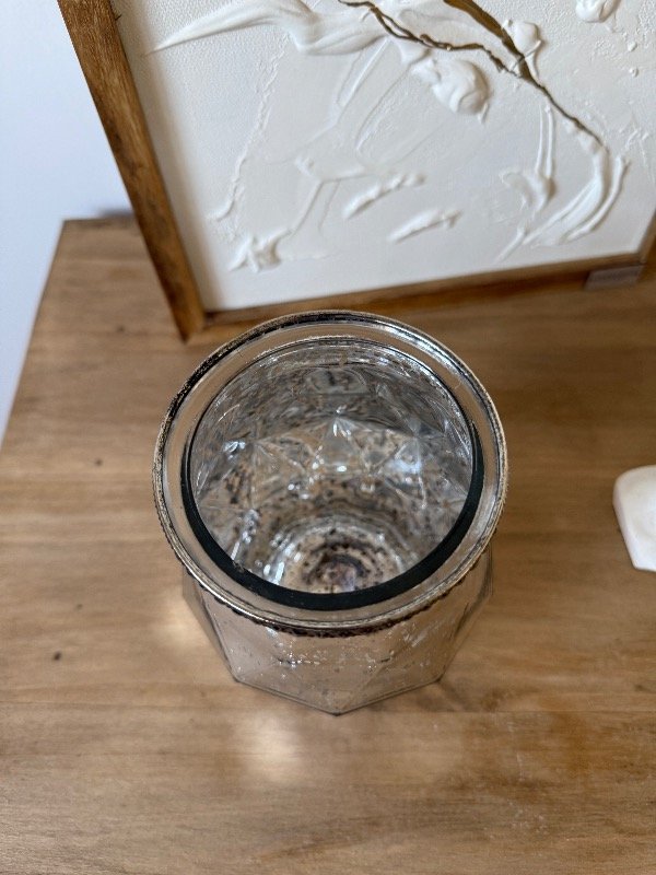 Florero de vidrio color plateado. Ideal para centro de mesa o para tu rincón!