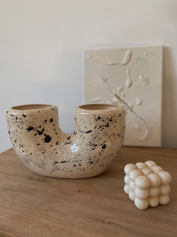 Florero de cerámica en color crema o salpicado. Ideal para centro de mesa o para tu rincón!