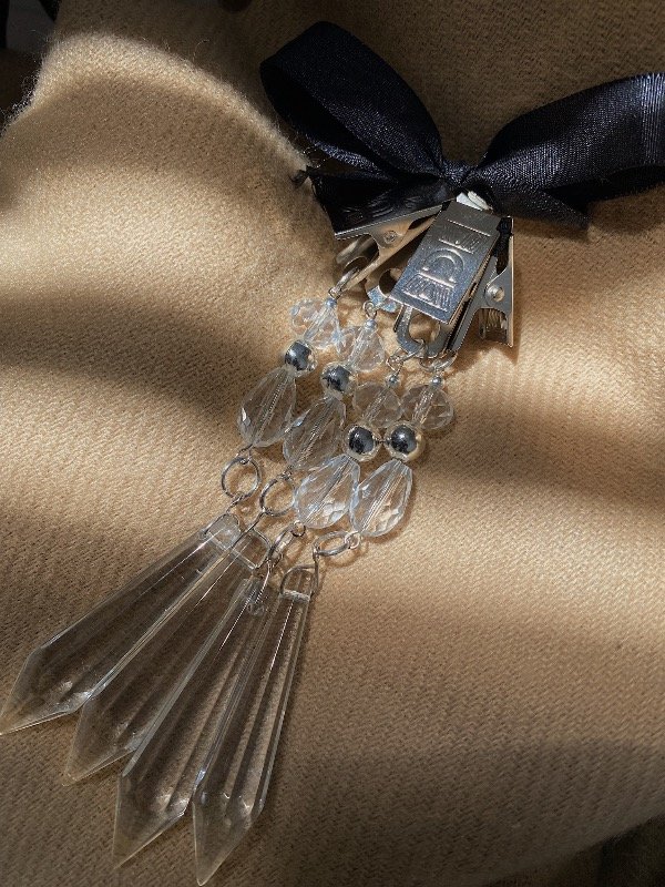 MODO DE USO Y ADVERTENCIAS: trae un broche ideal para sujetarlo al mantel. Mantener fuera del alcance de los niños. Producto frágil.
