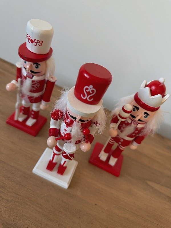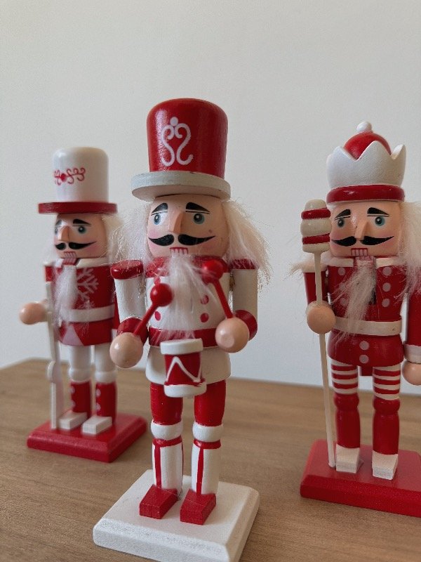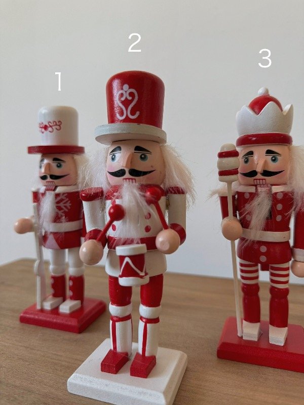 Disponibles en distintas combinaciones de colores —rojo, dorado y blanco—, estos cascanueces son el detalle perfecto para realzar tu deco festiva.