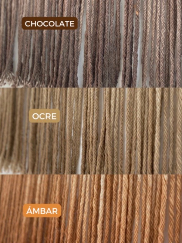 Colores: chocolate, ocre, ambar, y oliva