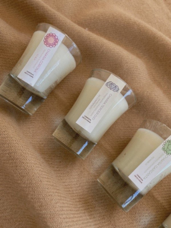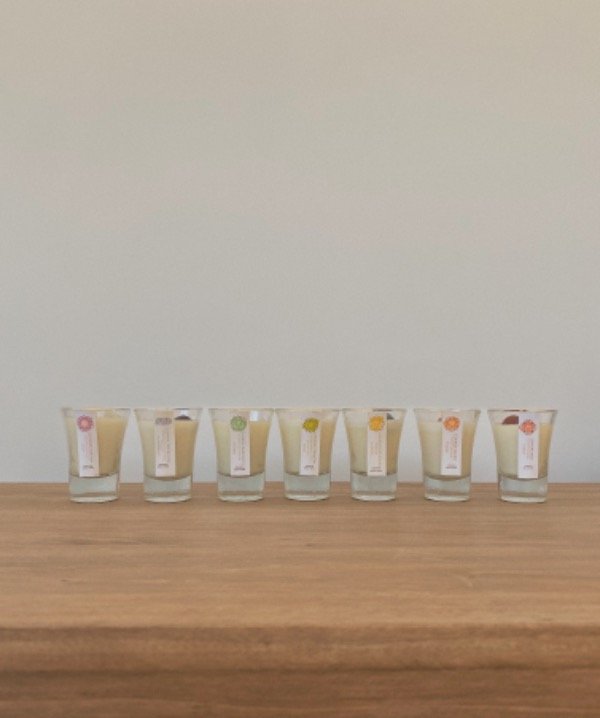 Velas de cera de soja, con los mas exquisitos aromas y sus piedras energéticas con reiki. Los aromas no son a elección.